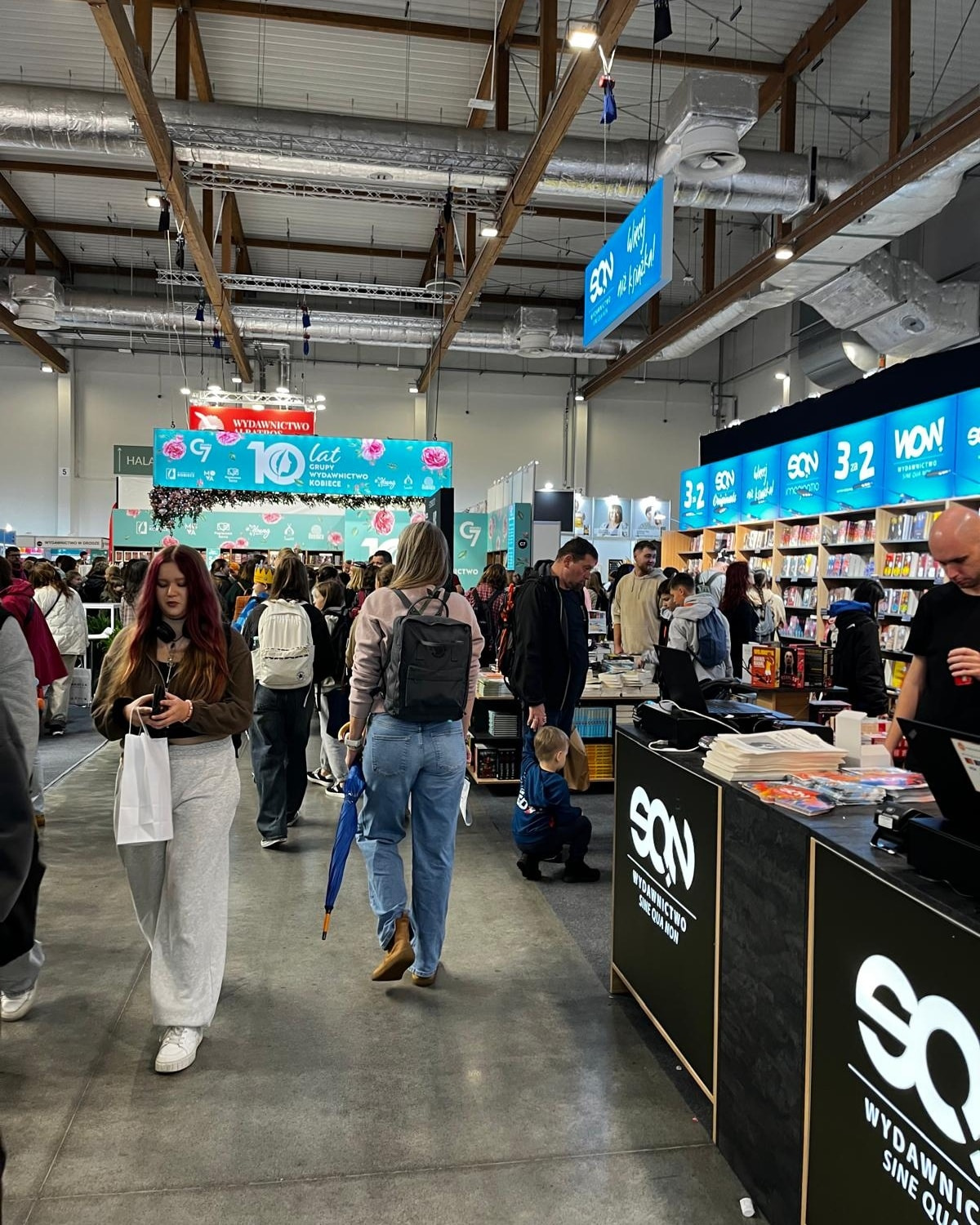 w klimat panujący w Krakowie. W obecnym świecie, gdzie wiele procesów przejmuje sztuczna inteligencja, to właśnie książki dają nam możliwość oderwania od wirtualnej rzeczywistości.Fajnie było się „wylogować” i być częścią tego wydarzenia.