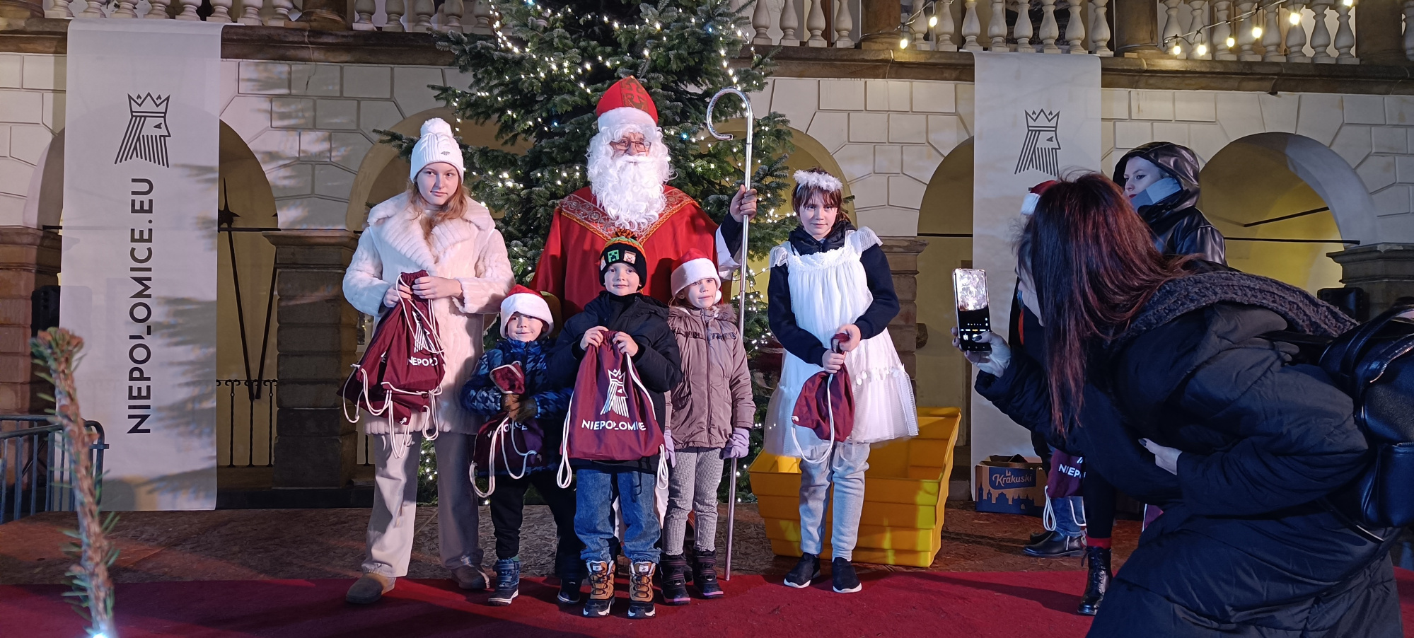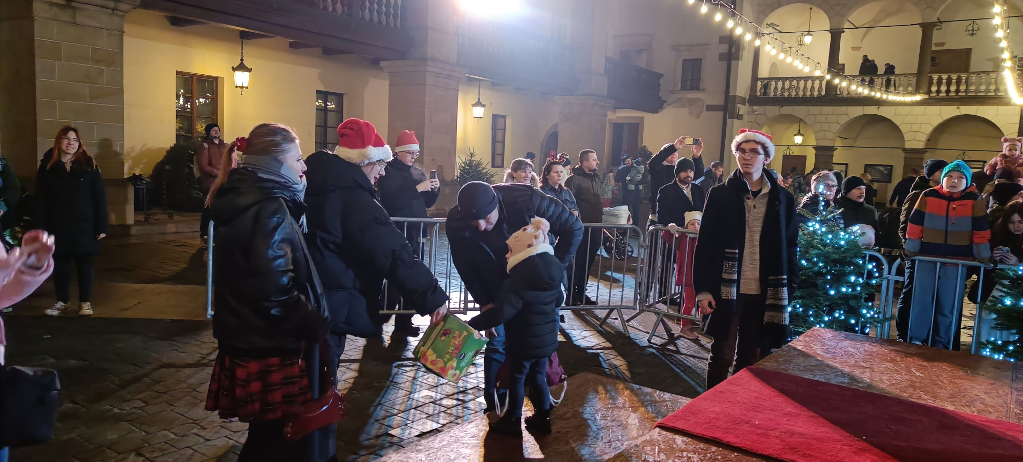 06.12.2025 09:185 grudnia w Niepołomicach pojawił się wyjątkowy gość – Święty Mikołaj! Dziedziniec Zamku Królewskiego wypełnił się radosnymi dziećmi, które z niecierpliwością oczekiwały na rozdawanie prezentów. W organizacji wydarzenia nie mogło zabraknąć wolontariuszy z Zespołu Szkół im. Ojca Świętego Jana Pawła II w Niepołomicach, którzy – wcielając się w Aniołki i Elfy – dzielnie wspierali pracę Świętego Mikołaja.Pomagali w kolejce, dbali o porządek, współtworzyli świąteczną atmosferę oraz troszczyli się o to, by każde dziecko mogło z uśmiechem odebrać swój prezent.